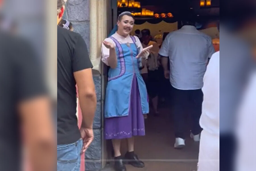 В видео, набравшее почти 7 млн просмотров в TikTok, показывается, как усатый ученик крестной феи приветствует девочку в бутике Bibbidi Bobbidi Boutique в Диснейленде в Калифорнии.