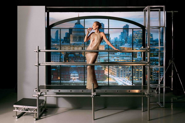 На снимках новой кампании Мосс одета в черное платье с золотыми цепочками и соответствующими аксессуарами, напоминающее кутюрное платье Chanel весны 1992 года. Оно было разработано ее подругой и стилистом Кэти Ингленд. Образы вдохновлены рекламой 11:30 Diet Coke Break 90-х годов.