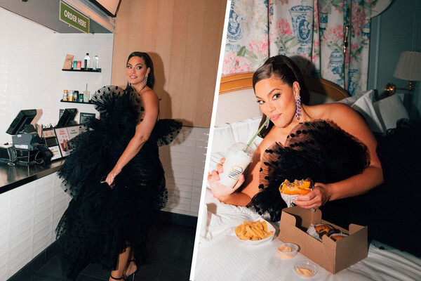 После кинопремьеры Эшли Грэм отправилась в бургерную Shake Shack и устроила фотосессию у бара. Модель заказала несколько блюд и продолжила съемку на постели в номере отеля. Перед камерой она кусала бургер и запивала его молочным коктейлем.