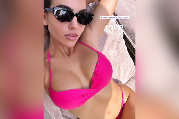 На размещенных фото 29-летняя Джорджина Родригес позировала в купальнике цвета фуксии, состоящем из топа-бандо и миниатюрных трусов с заниженной талией. Невеста Криштиану Роналду дополнила пляжный образ солнцезащитными очками от итальянского модного дома Fendi.