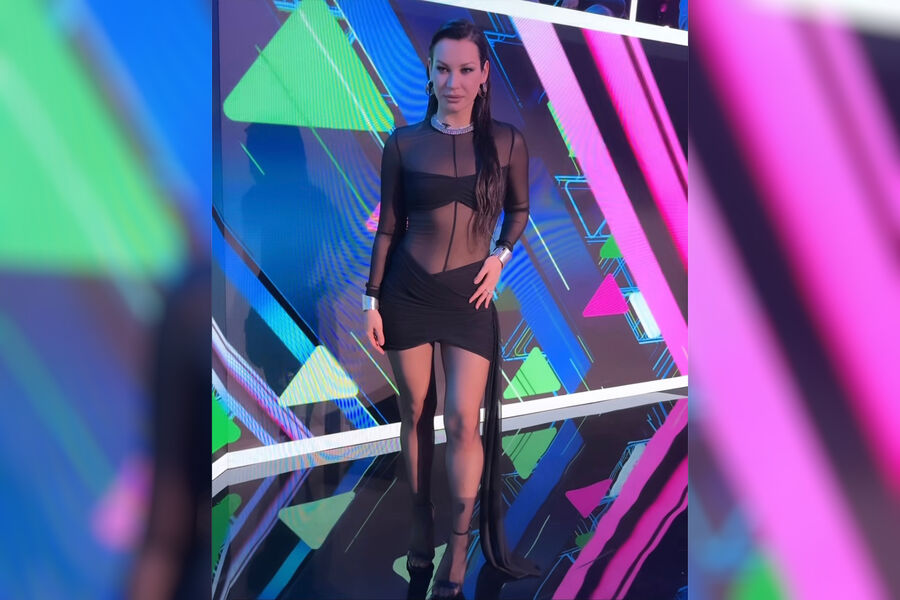 Ида Галич появилась на публике в черном прозрачном мини-платье. Образ дополнили босоножки и серебряные браслеты. Ей также сделали мокрую укладку и макияж со стрелками.