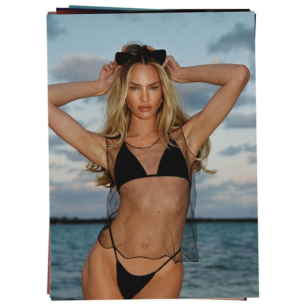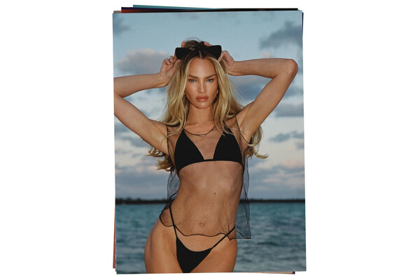 35-летняя Кэндис Свейнпол предстала перед фотографом в крошечном бикини черного цвета, поверх которого надела сетчатую майку. Она также добавила к образу ободок с кошачьими ушами и золотые серьги-кольца. Бывший «ангел» Victoria's Secret позировала на пляже Багамских островов.