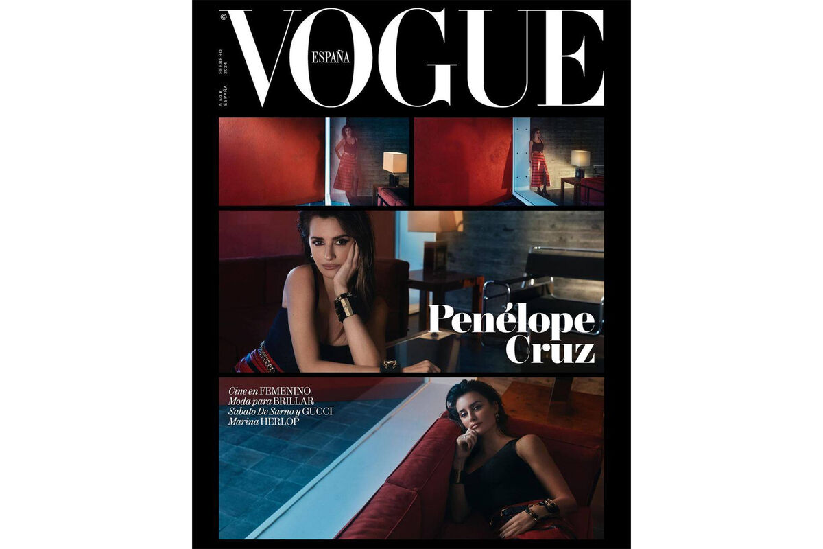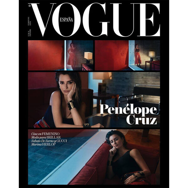 На обложке 49-летняя Пенелопа Крус позировала на диване в красной юбке с разрезом до бедра, черном топе и с золотым браслетом. Ей также сделали мокрую укладку и макияж с угольно-черными стрелками и шоколадной помадой.