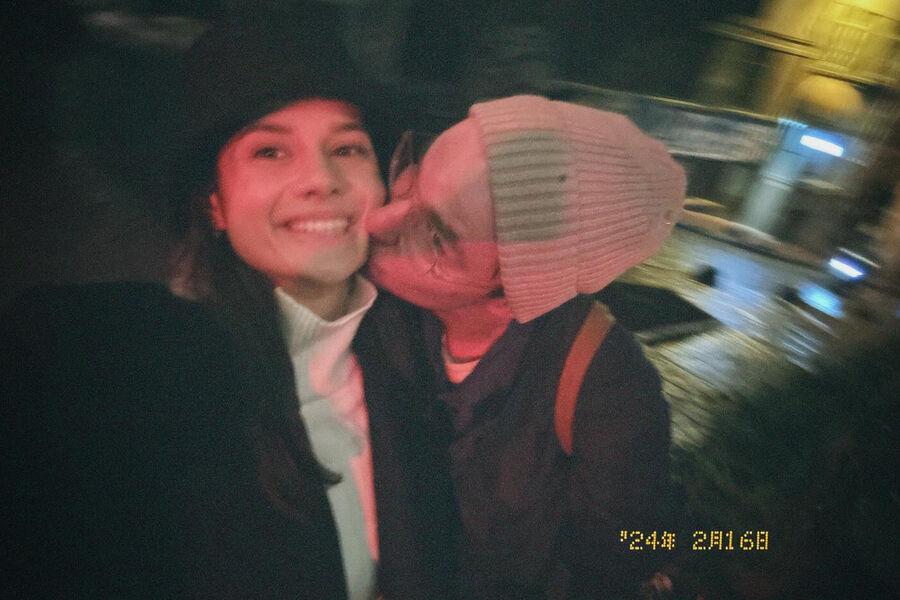 Пара устроила фотосессию на одной из улиц в Стамбуле. Они отправились на ужин в кафе и сделали несколько фотографий с поцелуями за столом.