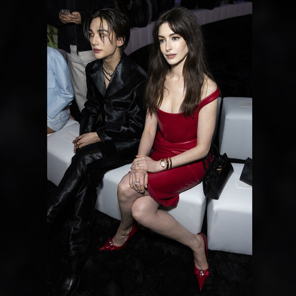 41-летняя Энн Хэтэуэй вышла на публику в красном мини-платье из кожи. Образ дополнили туфли на высоких каблуках, лаконичная черная сумка, бриллиантовые часы и кольца Bvlgari. На афтепати Недели моды Энн Хэтэуэй в вечернем образе танцевала под трек Ники Минаж.