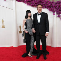 60-летний Николас Кейдж и 29-летняя Рико Шибата посетили 96-ю церемонию вручения премии «Оскар». Актер позировал на красной дорожке в черном брючном костюме, белой рубашке и туфлях. Возлюбленная артиста выбрала для мероприятия черное платье-макси с длинным шлейфом, которое было украшено серой структурированной тканью спереди. Рико Шибата добавила к наряду блестящий клатч и кольцо. Она сделала макияж с красной помадой.