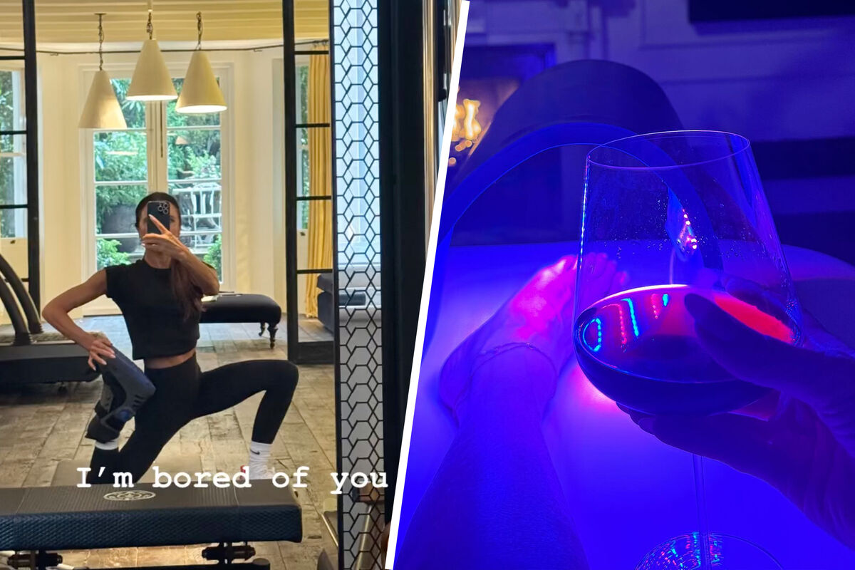 Позже она показала, как расслабляется после тренировок. Виктория Бекхэм следом выложила снимок, на котором ее нога лежит под лампой с красным светом. В руке модельер держала бокал красного вина.