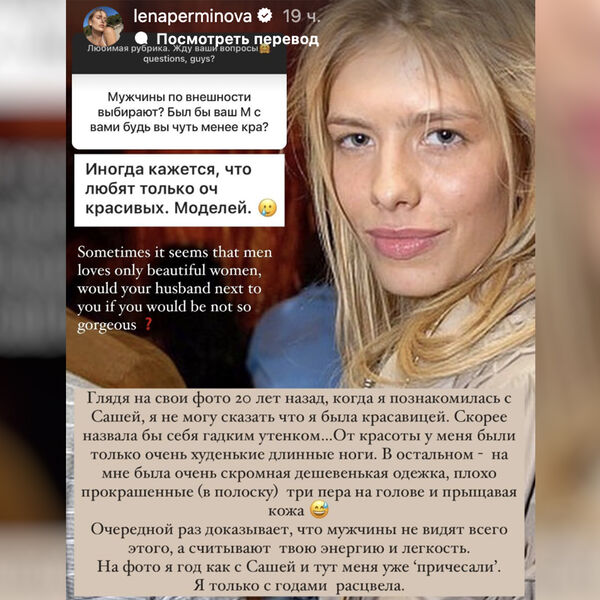 Модель и блогерша Елена Перминова раскритиковала свою внешность в молодости. Жена миллиардера Александра Лебедева выложила фотографию из архива в Instagram (владелец компания Meta признана в России экстремистской и запрещена).