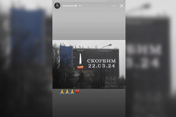 Ирина Шейк поддержала россиян после трагедии. Супермодель опубликовала фотографию билборда, на котором была надпись «Скорбим. 22.03.24». Знаменитость сопроводила публикацию смайликами с изображениями сложенных рук и разбитого сердца.