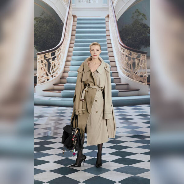 57-летняя Рената Литвинова позировала в бежевом тренче на голое тело, черных колготках и туфлях на высоких каблуках. В руках она держала сумку бренда. Ей также сделали укладку с «мокрыми» волнами и макияж с острыми стрелками и красной помадой. Помимо Ренаты Литвиновой, в съемке приняла участие мать креативного директора Демны Элла.