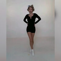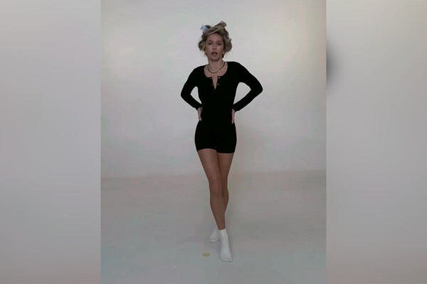 Перед камерой 42-летняя Вера Брежнева предстала в черном облегающем комбинезоне с декольте, который подчеркнул ее фигуру. Она также надела белые носки. Певица отказалась от макияжа и поддержала тренд на естественность. На ее голове были бигуди. Поклонники оценили ролик Брежневой.