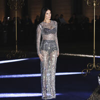 61-летняя Деми Мур выбрала для светского выхода провокационный образ. Актриса появилась на публике в черном комплекте белья, который состоял из бюстгальтера и трусов с завышенной талией. Знаменитость также надела «голое» платье-макси, которое было украшено стразами. Наряд завершили черные босоножки на каблуках. Деми Мур распустила волосы. Визажисты сделали ей вечерний макияж.