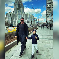 На фотографии Максим Виторган был запечатлен с Платоном в Москве. Он вместе с сыном гулял по столице. Актер предстал перед камерой в черной футболке, темном кардигане, широких брюках, кедах на белой подошве и солнцезащитных очках. Мальчик позировал в синей куртке, серых трениках, шапке и черных кроссовках. Платон держал в руке цветок.