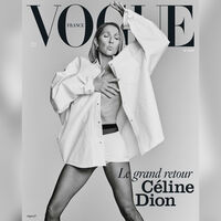 На обложке 56-летняя Селин Дион, которая страдает от синдрома мышечной скованности, предстала в откровенном образе. Знаменитость позировала в расстегнутой рубашке, коротких шортах и черных капроновых колготках. При этом певица отказалась от бюстгальтера. Артистке сделали нюдовый макияж и укладку. Она прикрыла голую грудь руками и посмотрела в сторону. Автор съемки — фотограф Касс Берд.