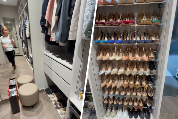 46-летняя Ольга Орлова провела быстрый видеотур по своей личной гардеробной. Бывшая участница поп-группы «Блестящие» засняла свою коллекцию туфель на каблуках, которая была рассортирована по цветам. Обувь лежала на полках в открытых шкафах. В другой части гардеробной были отделения для верхней одежды и кожаный пуфик бежевого цвета.