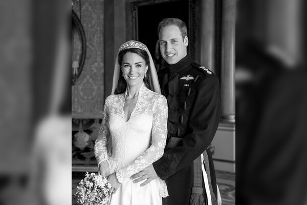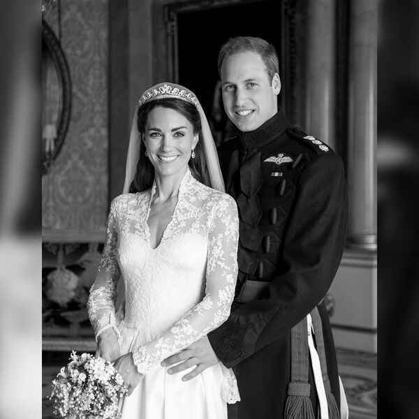 Принц Уильям и Кейт Миддлтон поделились архивным кадром по случаю 13-й годовщины свадьбы. Принцесса позировала в свадебном платье Alexander McQueen, которое было украшено кружевом. Над нарядом работала дизайнер Сара Бертон. Кейт Миддлтон дополнила образ тиарой, фатой и серьгами. Принц Уильям положил руку на бедро возлюбленной и улыбался фотографу.