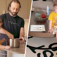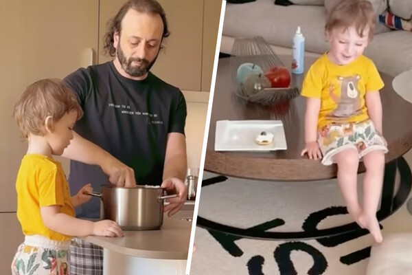 В кадре актриса показала, как Илья Авербух учит сына готовить сырники. После приготовления она сняла рассыпанную по кухне муку, а также сырники на ковре, которые Лев не донес до стола. Лиза Арзамасова похвалила сына и посмеялась над ситуацией.