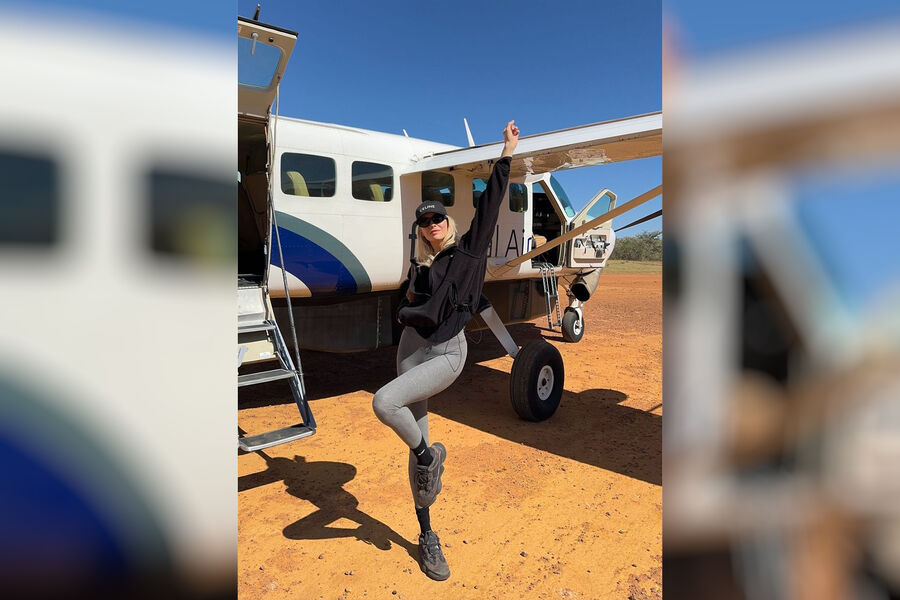 Модель Лена Перминова опубликовала первые фото из путешествия. Прилетев в Африку, вся семья пересела на частный борт и полетела к отелю. Модель также показала, как она с детьми ехала на машине по полю. Перминова рассказала, что семья уже успела встретить диких животных.