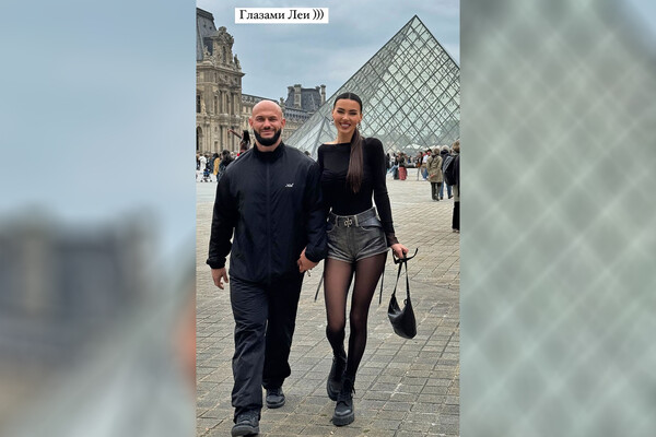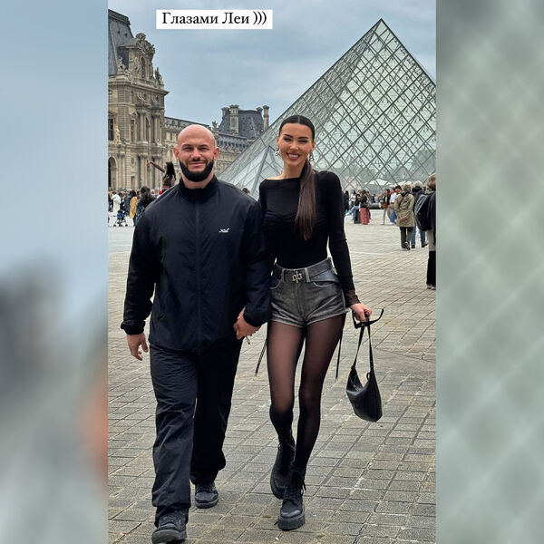 Оксана Самойлова предпочла для похода в Лувр микрошорты, колготки, облегающий топ и сумку из кожи. Волосы ей уложили в высокий хвост и сделали легкий макияж. Джиган держал супругу за руку и прогуливался по площади у музея.