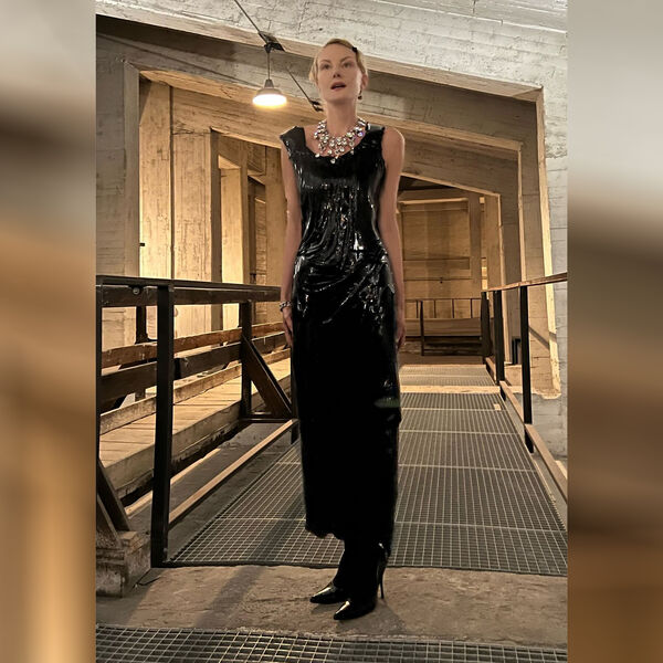 57-летняя Рената Литвинова позировала в черном платье-макси из латекса от бренда Balenciaga. Образ дополнили массивные серьги и ожерелье с крупными камнями. Ей также сделали ретро укладку и вечерний макияж.