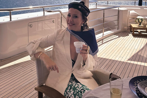 42-летняя Ксения Собчак была запечатлена в ярко-зеленом платье с цветочным принтом, которое дополнила белым жакетом, черными кроссовками и синей бескозыркой. Журналистка также надела несколько браслетов и серьги с жемчугом. Она позировала сидя за столом на яхте. Интернет-пользователи не оценили наряд Собчак. Некоторые сравнили ее с женой юмориста Евгения Петросяна, Татьяной Брухуновой, чьи образы часто обсуждают в сети.