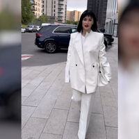 48-летняя Тина Канделаки предпочла для вечера белоснежный костюм с жакетом с мужского плеча. Образ дополнила сумка в тон и акцентные красные лодочки на высоких каблуках. Однако внимание поклонников привлек новый имидж — продюсер отстригла челку и волосы до плеч. Ей также сделали макияж с красной помадой.