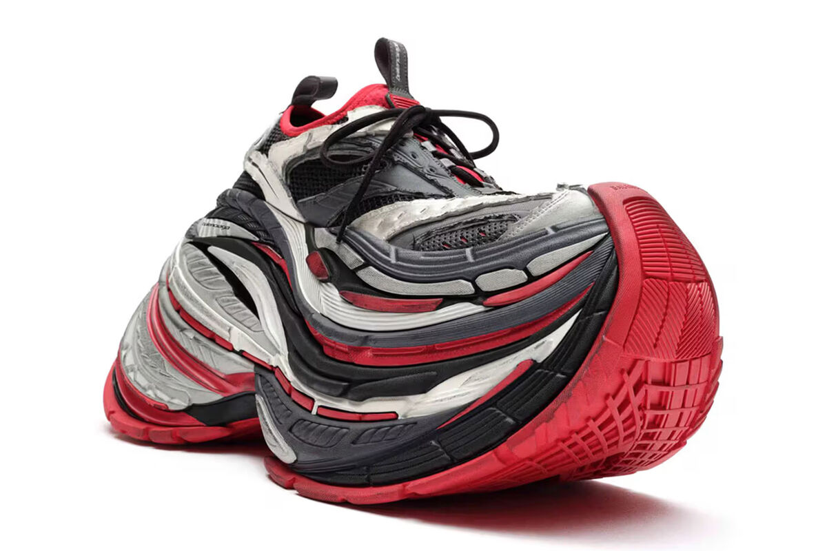 Новая модель Platform Sneaker на 16-сантиметровой платформе поднимет своего владельца на высоту. Кроссовки вошли в весеннюю линию Balenciaga 2025, которая была представлена в Китае 30 мая. Благодаря сетчатой подкладке кроссовки хорошо пропускают воздух, несмотря на чрезмерно многослойный вид. Окрашенные в красные, серебристые, белые и черные оттенки, с намеренными разрывами и следами износа, они имеют округлую форму.