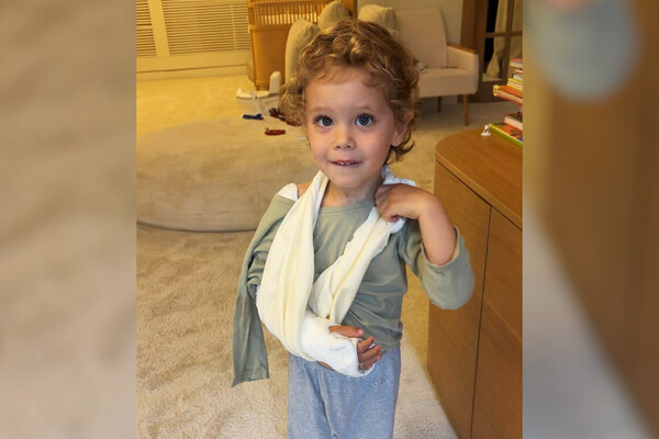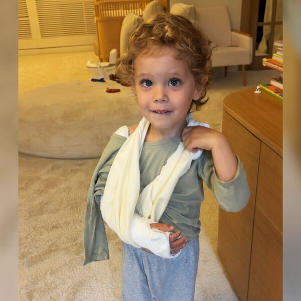 Модель Лена Перминова опубликовала фото сына со сломанной рукой, однако не сообщила причину появления травмы.