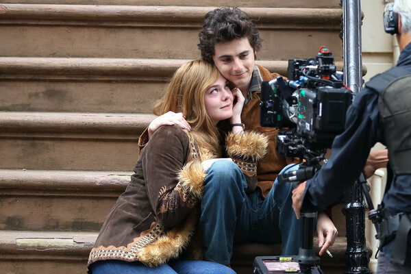 28-летний Тимоти Шаламе и 26-летняя Эль Фаннинг были замечены на съемочной площадке байопика о Бобе Дилане, который получил название «A Complete Unknown». Актеры сидели на лестнице и обнимались перед камерой.
