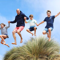 На новом снимке принц Уильям был запечатлен вместе с тремя детьми, прыгающими с горки. Известно, что фотографом съемки выступила Кейт Миддлтон.