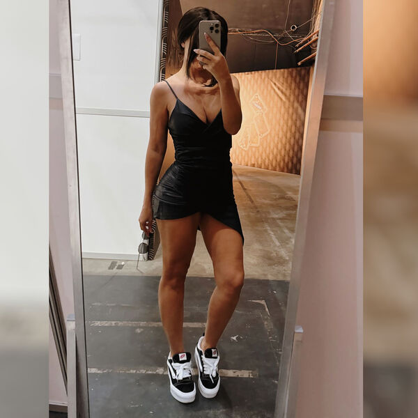 41-летняя Анна Седокова была запечатлена в микроплатье из кожи на тонких бретелях с глубоким декольте, которое подчеркнуло ее фигуру. Певица также надела черные кроссовки на платформе. Артистка собрала волосы в пучок и выпустила пряди у лица.