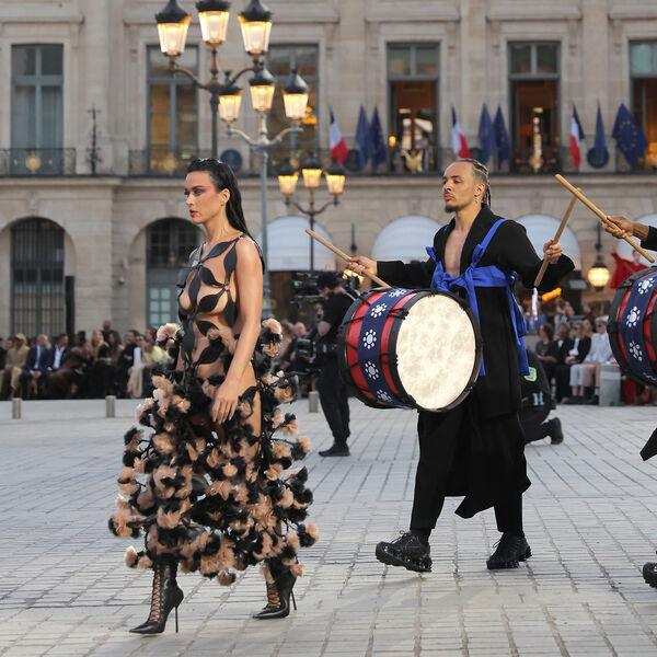 39-летняя Кэти Перри приняла участие в показе Vogue World, который состоялся 23 июня в Париже. Поп-исполнительница вышла на подиум в черном кожаном платье Noir Kei Ninomiya с провокационными вырезами, которое было украшено цветами. При этом певица не стала надевать нижнее белье. Образ знаменитости дополнили ботильоны со шнуровкой на каблуках. Визажисты сделали артистке макияж с розовыми тенями и черными стрелками, а стилисты — укладку с эффектом мокрых волос.