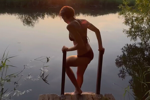 33-летняя Анастасия Ивлеева предстала перед камерой в темном бикини, которое подчеркнуло ее тело. Блогерша спустилась к реке, чтобы поплавать на закате.