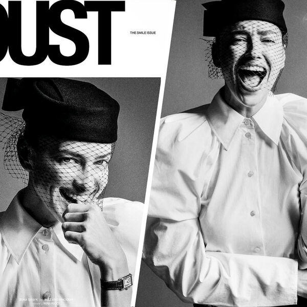 Ирина Шейк позировала в белой рубашке с рукавами-фонариками и со шляпкой с вуалью на голове. Образ дополнили часы Cartier на кожаном ремешке. В руках она держала сигарету. Ей также сделали нюдовый макияж и собрали волосы в низкий пучок. Фотографами выступили Инез ван Ламсвеерде и Винуд Матадин.