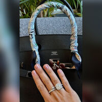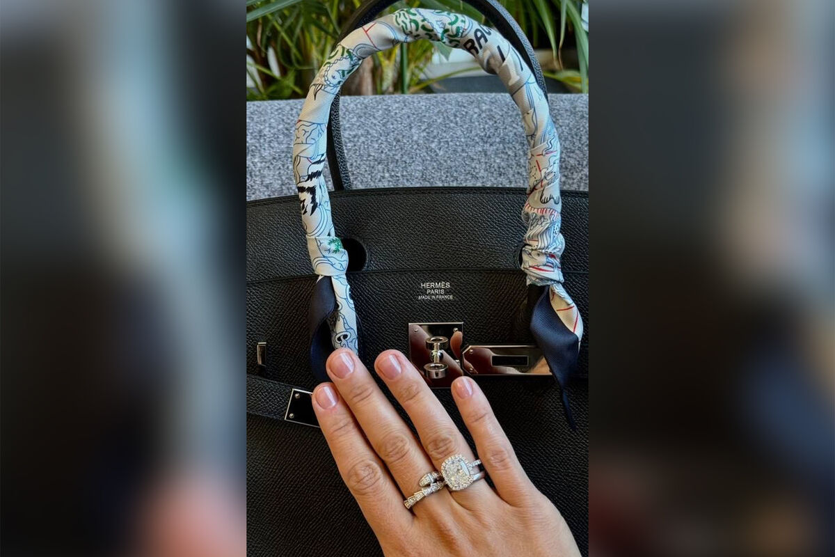 Диджей получила в подарок сумку из черной кожи Birkin от французского бренда Hermes. Стоимость изделия стартует от 3 млн рублей в зависимости от типа кожи и фурнитуры. На ручку сумки она завязала шелковый платок. Карина Истомина также продемонстрировала два кольца на пальцах, украшенных бриллиантами.