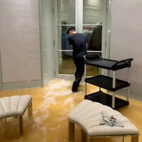 На опубликованных кадрах рэпер сдерживал воду в гардеробной дома из-за потопа. Однако ему это не удалось, и через двери огромный поток воды залился в дом. Уточняется, что особняк расположен в Торонто, а его стоимость составляет $100 млн.
