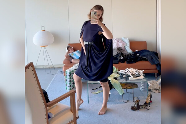 «Новая FW24 у Loewe — невероятная. Посмотрите какое я нашла себе темно-синее платье на строгий вечер. Ну и вся примерочная в хаосе — видна моя активность», — написала Собчак.
