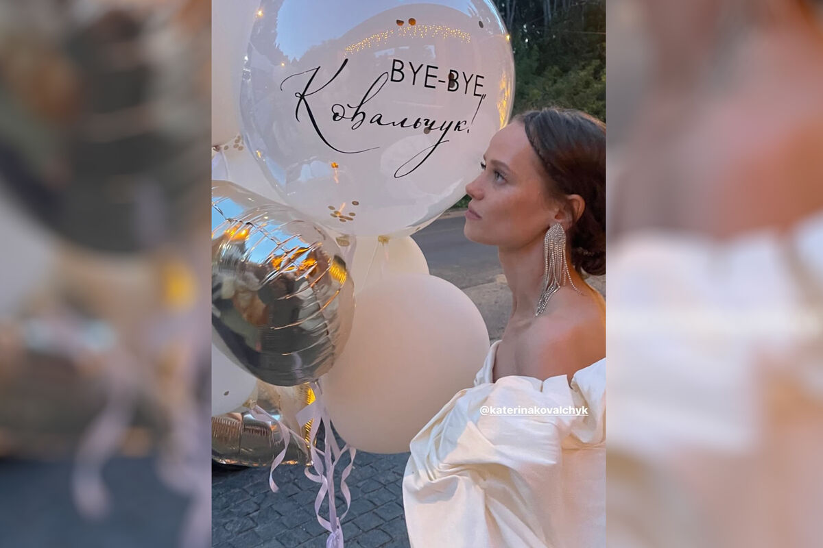 На снимке 31-летняя Катерина Ковальчук была запечатлена в белом мини-платье с открытыми плечами, которое дополнила массивными блестящими серьгами. Актриса стояла на фоне воздушных шаров, на одном из которых была надпись: «Bye-Bye Ковальчук» («Пока-пока, Ковальчук»).