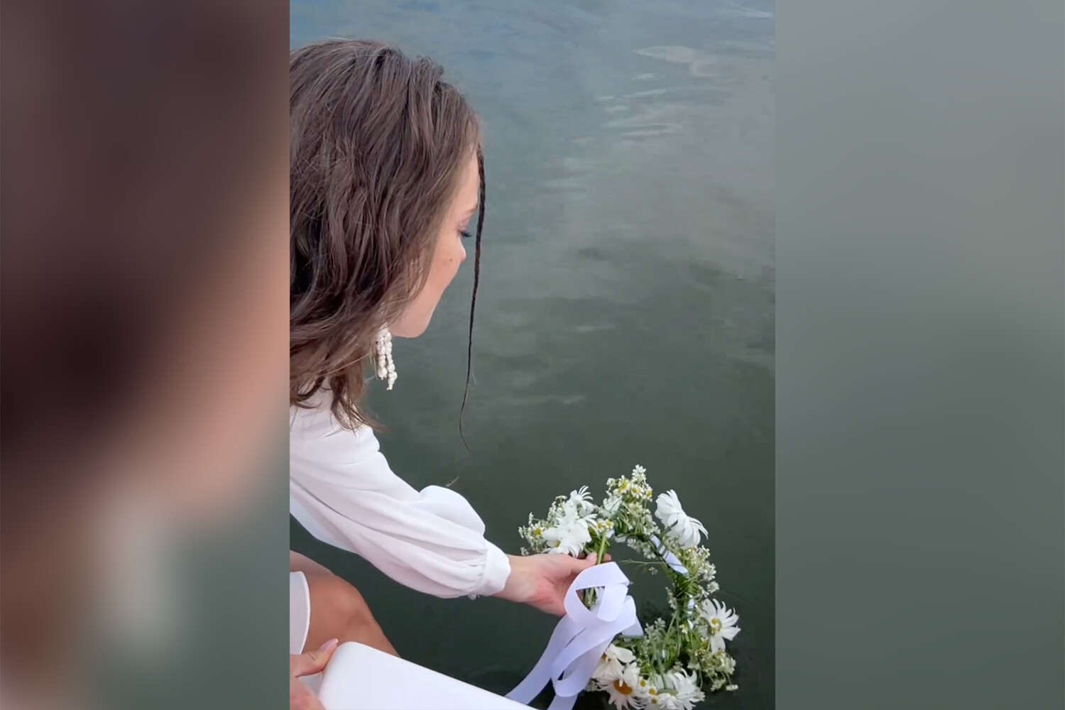 В кадре Ковальчук опустила венок из ромашек на воду, улыбнулась и помахала в след. Подобный ритуал совершают девушки перед свадьбой. Согласно ритуалу, чем дальше уплывает венок, тем счастливее брак и дольше жизнь.