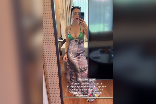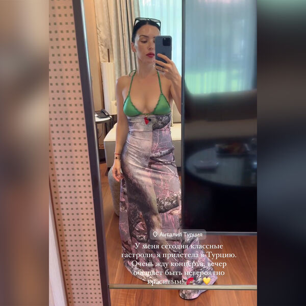 Ольга Серябкина опубликовала видео, в котором рассказала, что прилетела на гастроли в Анталию. Певица была запечатлена в зеленом лифе от бикини и спущенном макси-платье. Поп-исполнительница позировала с гладким пучком и макияжем с ярко-розовой помадой.