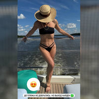 Перед камерой 48-летняя Тина Канделаки предстала в черном бикини, которое состояло из лифа с золотистой фурнитурой и плавок с разрезами. Журналистка дополнила пляжный образ соломенной шляпой и наручными часами.