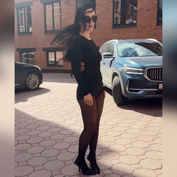 Ольга Серябкина позировала в боди с голой спиной и черных колготках. Образ дополнили туфли на каблуках и солнцезащитные очки. Волосы ей распустили и сделали вечерний макияж. Поклонникам образ напомнил откровенные наряды Бьянки Цензори.