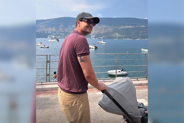 На снимке звезда «Холопа» был запечатлен во время прогулки с ребенком на набережной. Милош Бикович позировал в бордовом поло, бежевых брюках, черной кепке и солнцезащитных очках. Сын актера сидел в коляске, которая была повернута боком к камере.