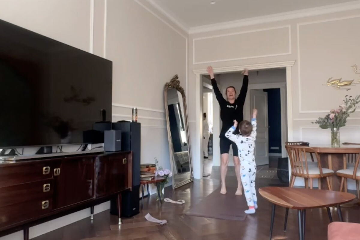 Бизнесвумен Ида Галич показала утреннюю зарядку с сыном дома. Снимками она поделилась в Telegram-канале.