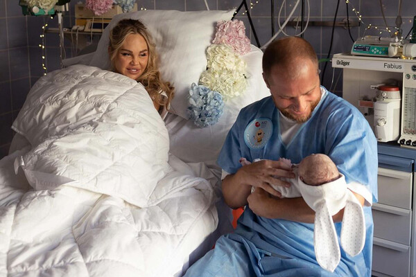 Мария Погребняк была запечатлена вместе с мужем, предпринимателем Игорем Головинским, и новорожденным сыном Владимиром. На одном из кадров блогерша лежала в кровати, а рядом с ней сидел супруг с ребенком на руках. Мальчик был одет в белый костюм с заячьими ушами. Лицо младенца было скрыто от камеры.