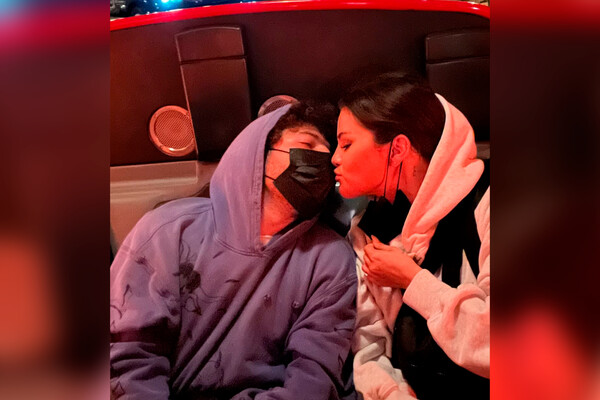 Бенни Бланко и Селена Гомес отправились на свидание в Диснейленд, где катались на аттракционах. На новом фото музыкальный продюсер был запечатлен в темно-синем худи и черной маске, а певица — в сером худи. Артистка собрала волосы в низкий хвост и сделала нюдовый макияж. Селена Гомес приспустила маску, чтобы поцеловать возлюбленного.