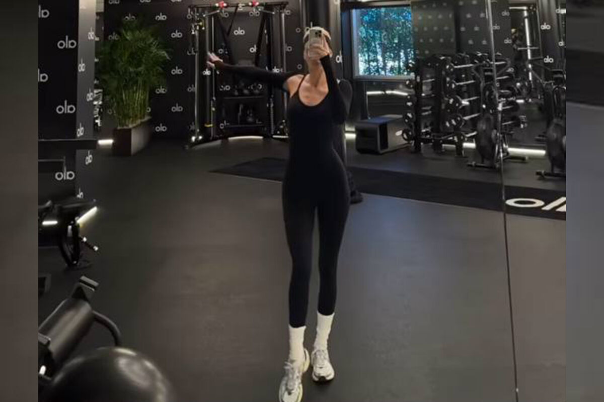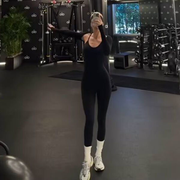 Кендалл Дженнер показала изменившуюся фигуру в черном комбинезоне с глубоким декольте. Образ дополнили высокие белые носки и кроссовки. Волосы она уложила в хвост и отказалась от макияжа. Снимок был сделан в одном из спортзалов отелей Парижа.