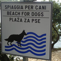 В Хорватии, в городе Пула, туристы могут увидеть знак с собакой, судя по которому, существуют пляжи не только для людей, но и для псов.