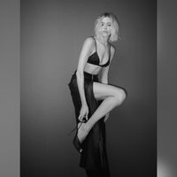 38-летняя Елена Перминова позировала в черном шелковом бюстгальтере, который дополнила макси-юбкой с разрезом и туфлями на каблуках. Модель была запечатлена с объемной укладкой и макияжем с черными стрелками.