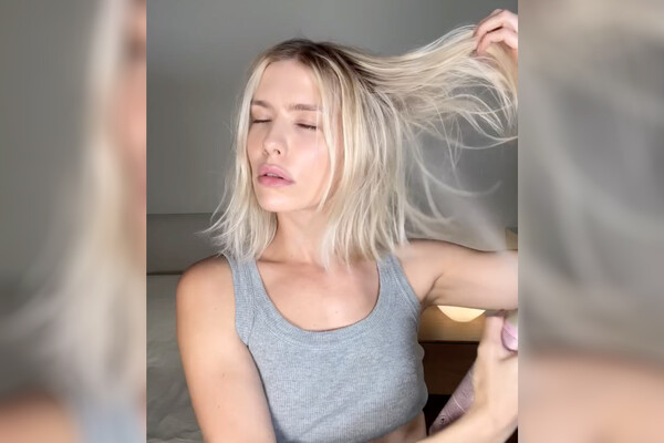 Модель Лена Перминова сняла видео без макияжа и укладки, показав свою естественную красоту. Она также была одета в серый топ и синие джинсы.